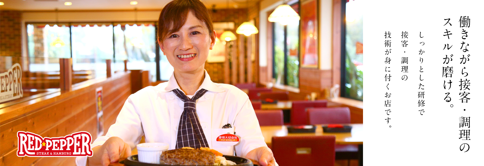 RED PEPPERは『調理・洋食の知識』や『接客スキル』が身に付き、実生活にも活かせるお仕事です。