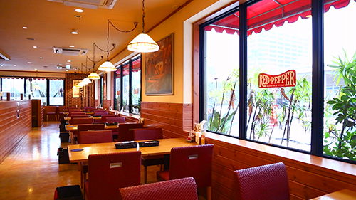 RED PEPPERは産業道路沿いの立地にあり、サラリーマンや家族連れなど様々なお客様を暖かくお迎えしています。