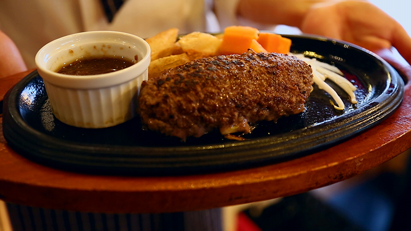 - 当店はこだわりのお肉で作ったハンバーグを中心に、さまざまな食材を使った副菜バイキングが楽しめるハンバーグレストランです。素材のおいしさを引き出し、一つ一つ丁寧に調理を行うのが調理のお仕事です。